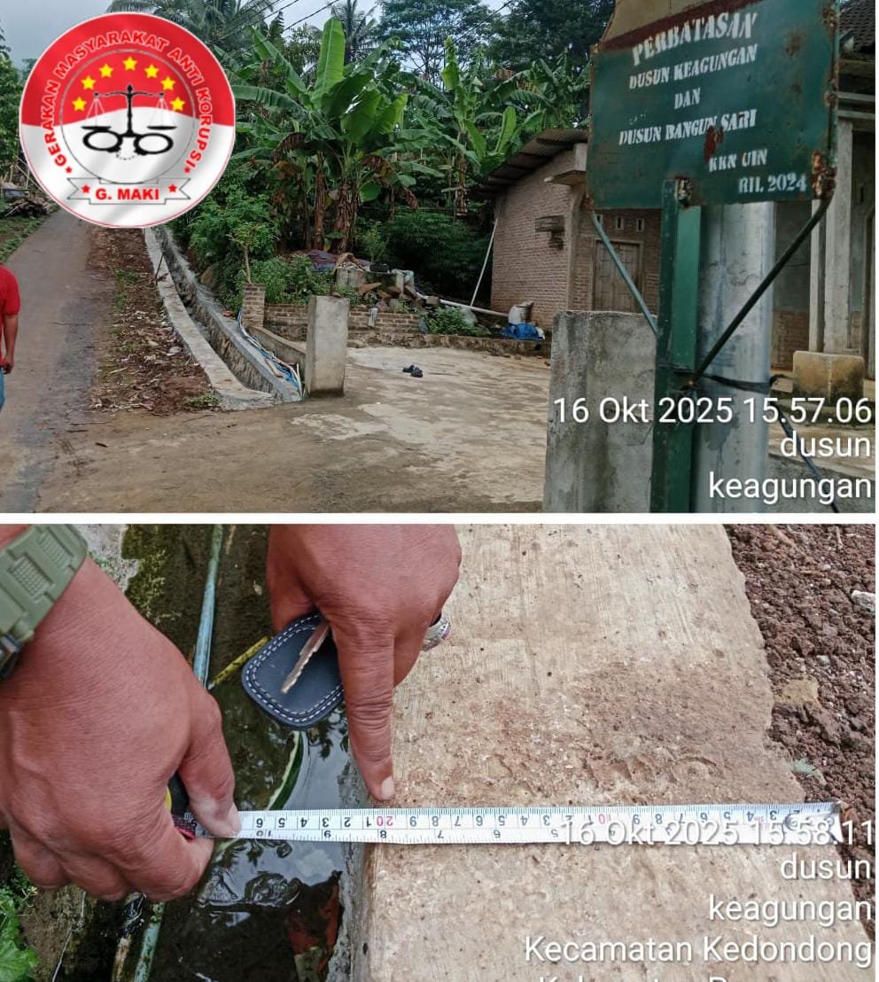 Pesawaran – Aktivis Gerakan Masyarakat Anti Korupsi ( G-MAKI ) temukan penampakan pekerjaan proyek drainase yang nampak terlihat baru selesai dikerjakan entah dari mana sumber anggaran nya karna tidak terlihat papan informasi pagu anggaran yang terpasang di lingkungan sekitar pekerjaan tersebut yang berada di Dusun Keagungan Desa Sinar Harapan Kecamatan Kedondong Kabupaten Pesawaran Provinsi Lampung, ( Kamis /16/10/2025 )