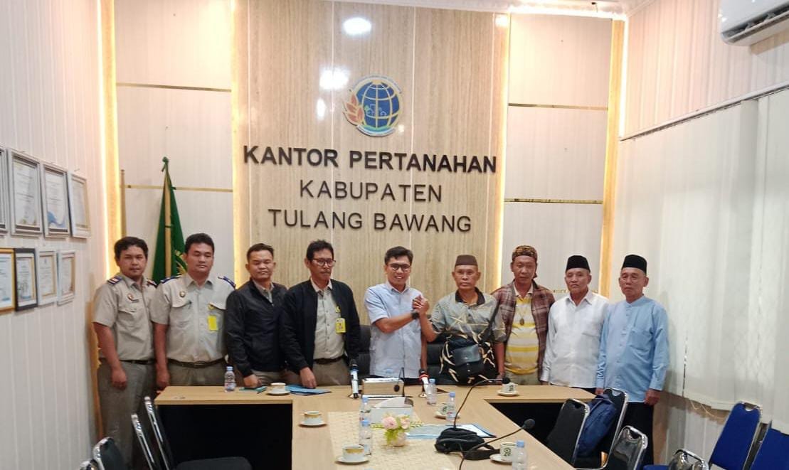Infojejama.com // Tulang Bawang, – Pada Hari Senin Tanggal 2 Febuari 2026 sejumlah perwakilan dari masyarakat tiga kampung Bakung Ilir, Bakung udik Dan Bakung Rahayu mendatangi kantor Pertanahan ATR/BPN Kabupaten Tulang Bawang untuk melaksanakan Audensi, untuk pembahasan ukur ulang dan Voting Lahan Rawa Sempayou Bonoh.