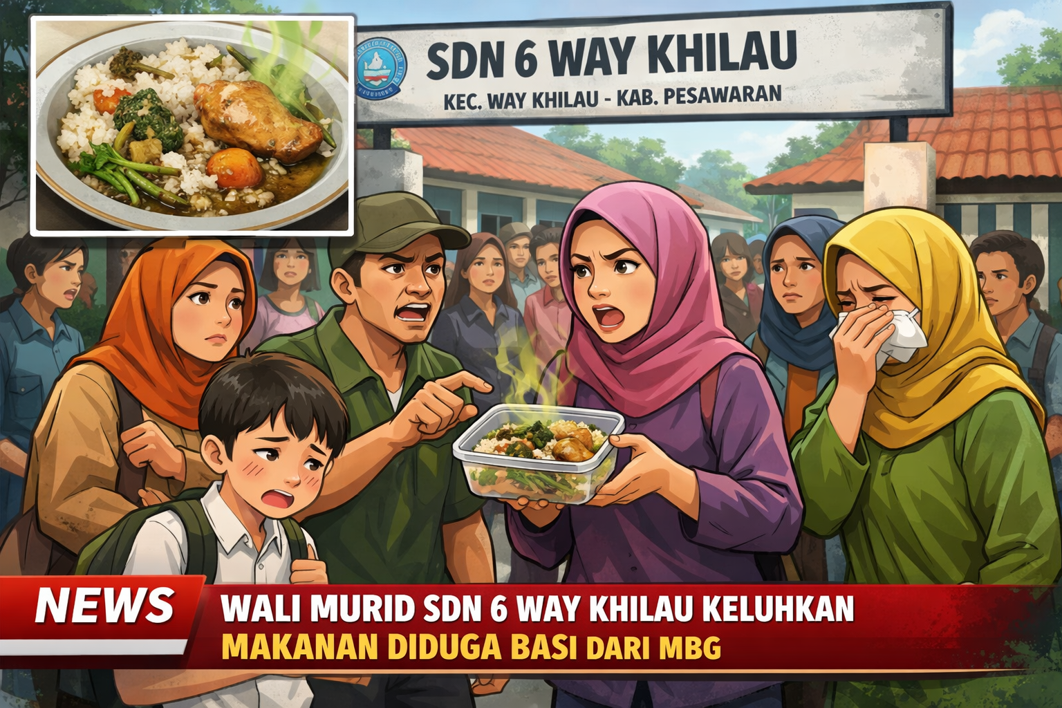 Infojejama.com // Pesawaran – Program Makan Bergizi Gratis (MBG) yang digulirkan di Kecamatan Way Khilau menuai sorotan dari wali murid. Salah satu wali murid SD Negeri 6 Way Khilau, Rudi Jober, mengaku sangat menyayangkan adanya dugaan pemberian makanan yang sudah basi kepada anak-anak sekolah pada Jumat, 5 Februari 2026.
