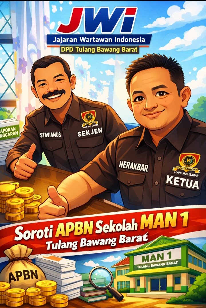 Infojejama.com // Tulang Bawang Barat – Minggu 15 Februari 2025 – Ketua JWI DPD Tulang Bawang Barat, Heri Akbar, menyoroti pengelolaan anggaran Tahun 2025 di MAN 1 Tulang Bawang Barat yang bersumber dari APBN dan dilaksanakan melalui mekanisme swakelola.