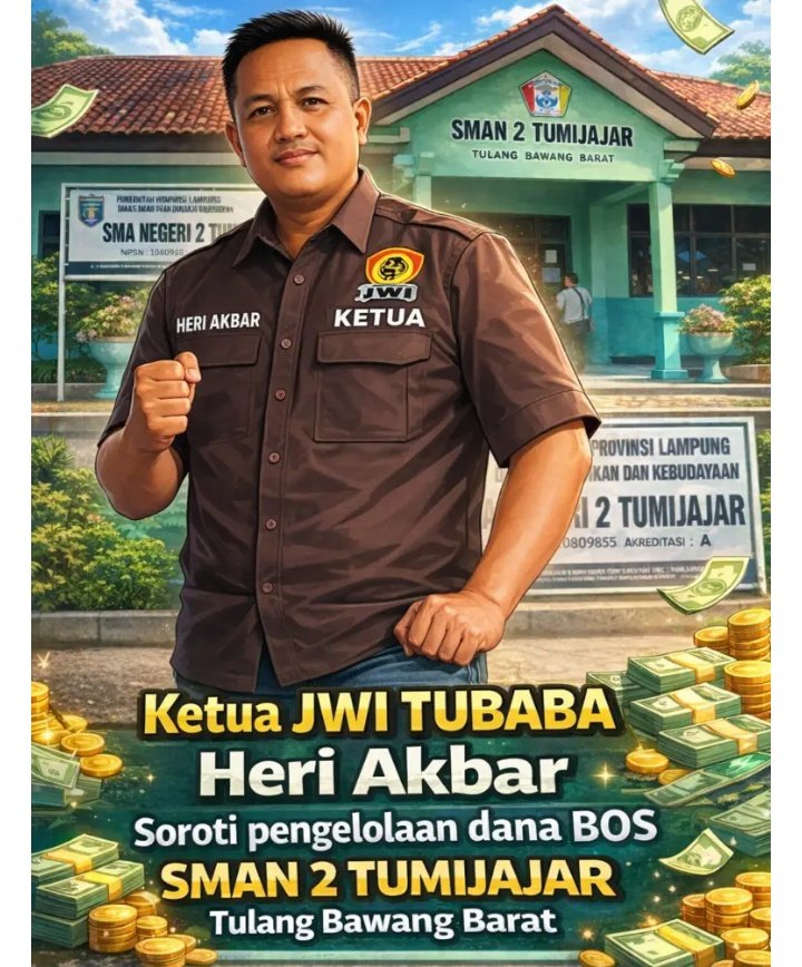infojejama.com // _Tulang Bawang Barat – Ketua JWI DPD Tulang Bawang Barat, Heri Akbar, menyoroti pengelolaan anggaran Tahun 2025 di SMAN 2 Tulang Bawang Barat yang bersumber dari APBN dan dilaksanakan melalui mekanisme swakelola.