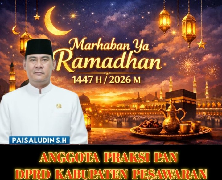 PESAWARAN – Menyambut datangnya bulan suci Ramadhan 1447 Hijriah yang bertepatan dengan tahun 2026 Masehi, Anggota Dewan Perwakilan Rakyat Daerah (DPRD) Kabupaten Pesawaran dari Fraksi PAN, Paisaludin, S.H., mengucapkan selamat menunaikan ibadah puasa kepada seluruh masyarakat Kabupaten Pesawaran Provinsi Lampung.