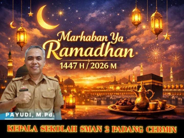 Pesawaran, 18 Februari 2026 – Menjelang datangnya bulan suci Ramadhan 1447 Hijriah, Kepala Sekolah Menengah Atas Negeri (SMAN) 2 Padang Cermin, Kabupaten Pesawaran, Bapak Payudi, S.Pd., M.M. (sebagai contoh gelar), menyampaikan ucapan selamat menunaikan ibadah puasa kepada seluruh siswa, guru, staf tata usaha, serta masyarakat umum.