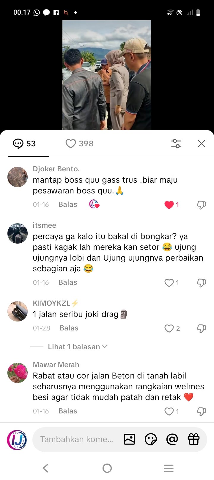 Unggahan tersebut langsung menuai beragam komentar dari warganet. Sejumlah akun menyuarakan harapan agar pekerjaan dilakukan sesuai standar dan menggunakan anggaran secara transparan karena bersumber dari uang rakyat.