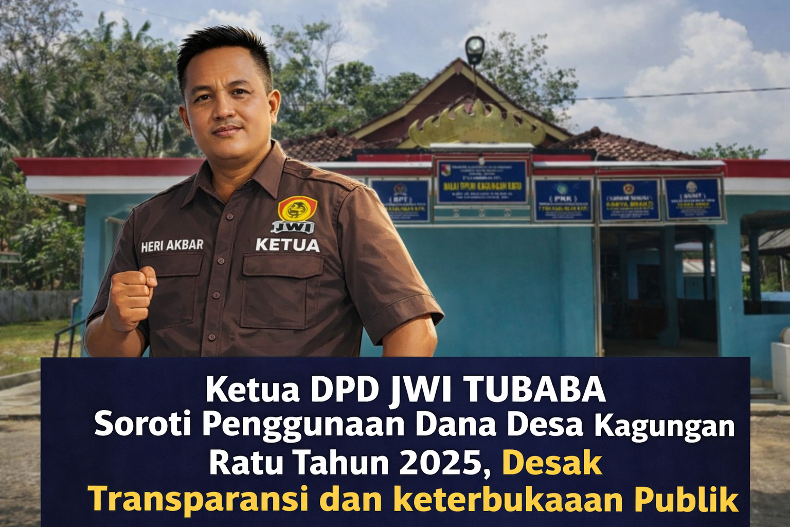 infojejama.com // Tulang Bawang Barat – Dewan Pimpinan Daerah Indonesia ( DPD ) Jajaran Wartawan Indonesia ( JWI ) Kabupaten Tulang Bawang Barat ( Tubaba ) memberikan perhatian serius terhadap pengelolaan Anggaran Dana Desa (DD) Tahun 2025 di Tiyuh/Desa Kagungan Ratu, Kecamatan Tulang Bawang Udik.
