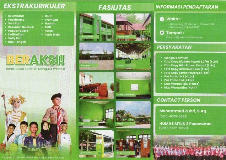 Pesawaran – Madrasah Tsanawiyah Negeri (MTsN) 2 Pesawaran membuka Penerimaan Peserta Didik Baru Madrasah (PMBM) Tahun Ajaran 2026–2027 dengan mengusung tema “Beraksi Berakhlakul Karimah, Mengukir Prestasi.” Program ini menjadi langkah MTsN 2 Pesawaran dalam mencetak generasi muda yang berakhlak mulia, berprestasi, serta memiliki kemampuan akademik dan teknologi yang baik.
