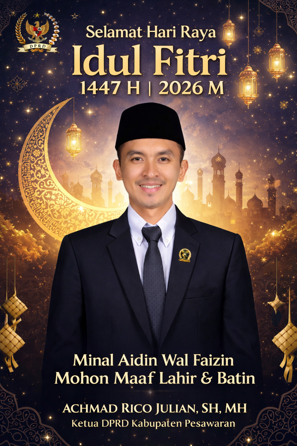 Pesawaran — Ketua DPRD Kabupaten Pesawaran, , menyampaikan ucapan selamat Hari Raya Idul Fitri 1447 Hijriah / 2026 Masehi kepada seluruh masyarakat Kabupaten Pesawaran.