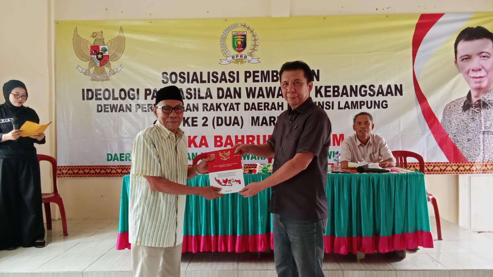 Infojejama.com | Pesawaran– Anggota DPRD Provinsi Lampung, Mustika Bahrum, S.E., M.M., menggelar kegiatan sosialisasi pembinaan ideologi Pancasila dan wawasan kebangsaan di Desa Tanjung Rejo kecamatan Way Khilau Sabtu (28/3/2026). Kegiatan ini disambut antusias oleh masyarakat setempat yang hadir dari berbagai kalangan.
