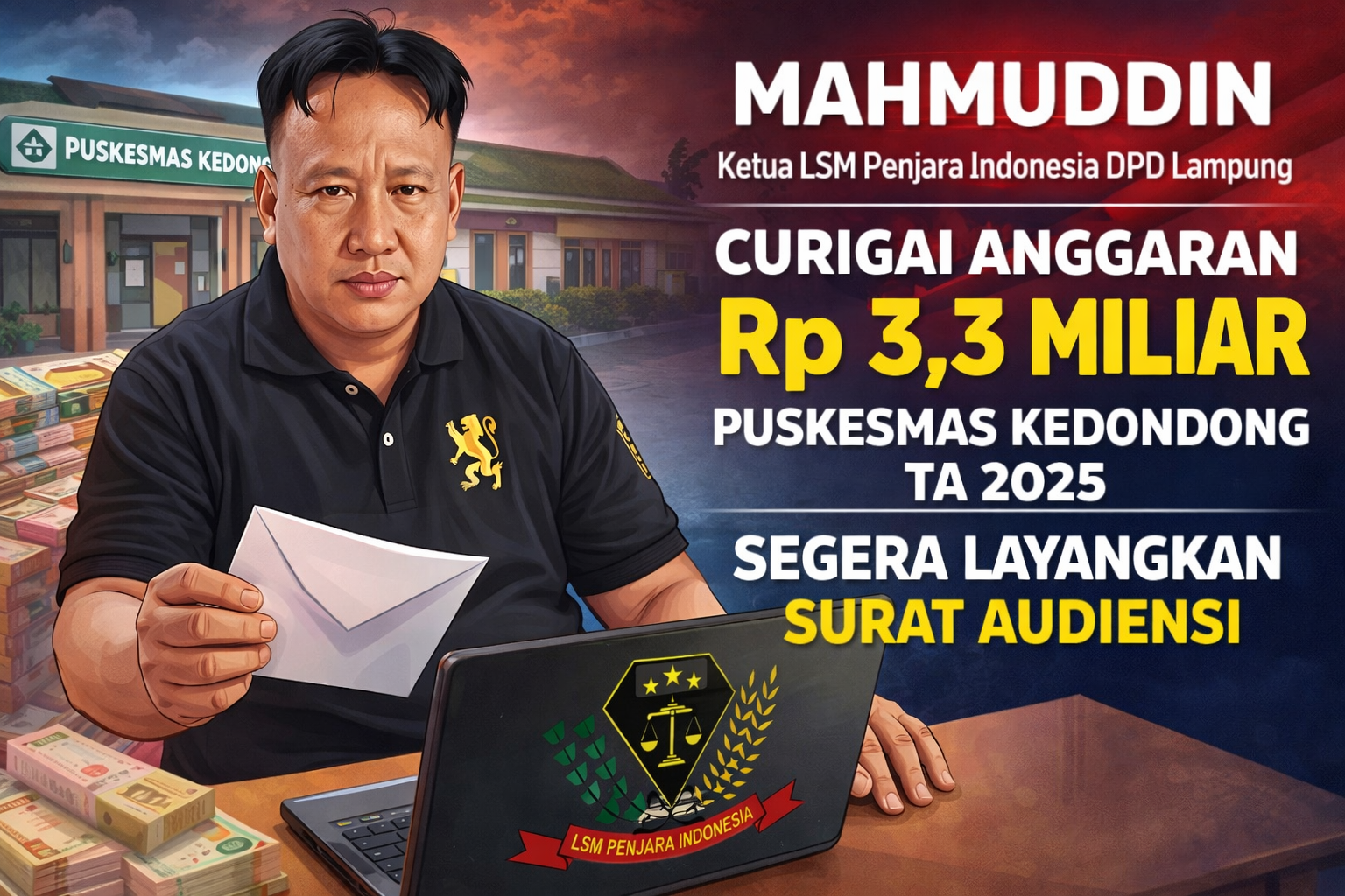 Pesawaran Lampung – Anggaran Puskesmas Kedondong Tahun Anggaran (TA) 2025 sebesar kurang lebih Rp 3,3 miliar menjadi kecurigaan Lembaga Swadaya Masyarakat (LSM) Penjara Indonesia DPD Lampung. Organisasi tersebut mencurigai adanya potensi ketidakwajaran dalam penggunaan anggaran yang berindikasi pada praktik mark up maupun dugaan korupsi.