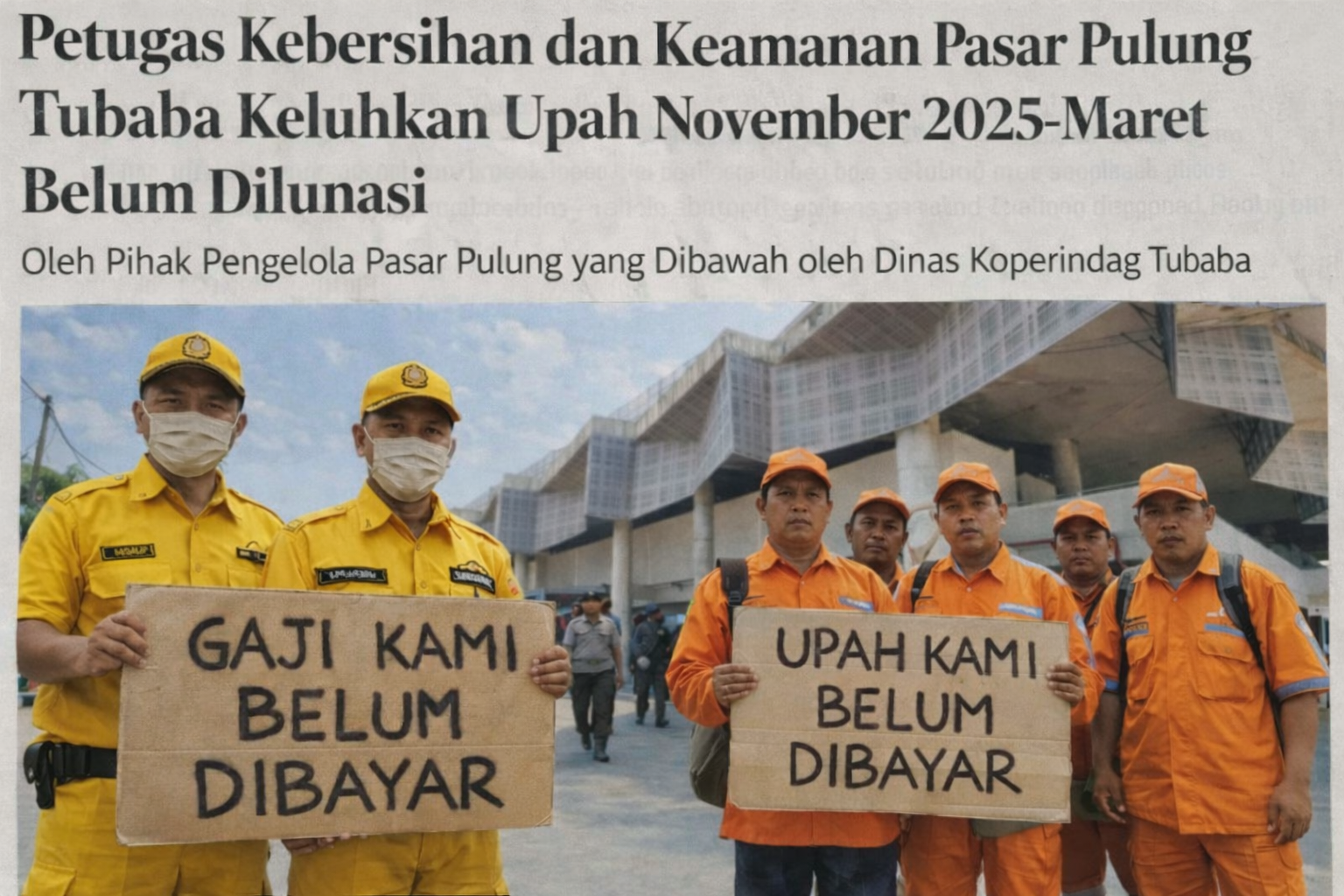 INFOJEJAMA.COM//TUBABA – Nasib pilu menimpa puluhan petugas kebersihan dan keamanan di Pasar Pulung Kencana, Tulang Bawang Barat (Tubaba). Pasalnya, hak gaji mereka selama lima bulan terakhir—terhitung sejak November 2025 hingga Maret 2026—tak kunjung dilunasi oleh pihak manajemen pengelola pasar di bawah naungan Dinas Koperindag Tubaba.