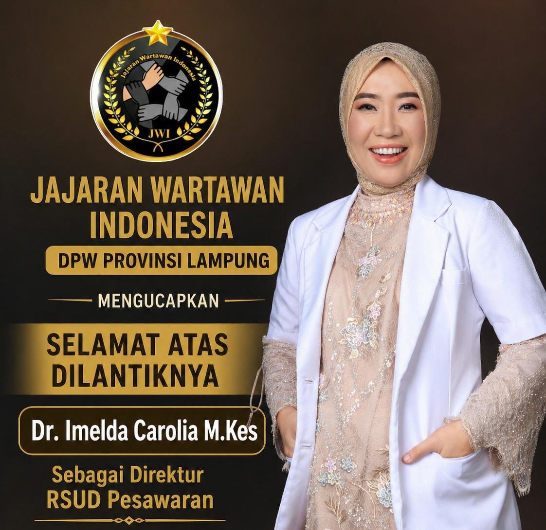 Pesawaran Lampung — Jajaran Wartawan Indonesia (JWI) Dewan Pimpinan Wilayah (DPW) Provinsi Lampung menyampaikan ucapan selamat atas dilantiknya Dr. Imelda Carolia, M.Kes sebagai Direktur RSUD Pesawaran.