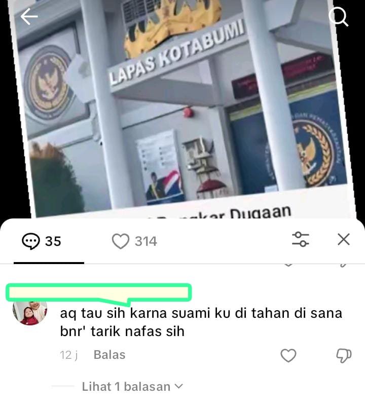 Diketahui unggahan berita tersebut di unggah di media sosial tiktok menuai kritik dari seseorang yang mengatakan itu benar serta menjelaskan bahwa suami nya di tahan di lapss kota bumi, seorang pemilik akun tiktok lalu melontarkan komentar nya,